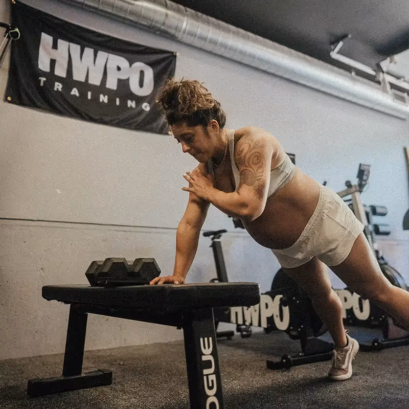 Once I got through the first trimester, my energy came barreling back. I maintained working out 5 to 6 times a week all 45 minutes to an hour, and 95% of that was just simply doing an HWPO SWEAT workout modified as I grew bigger.